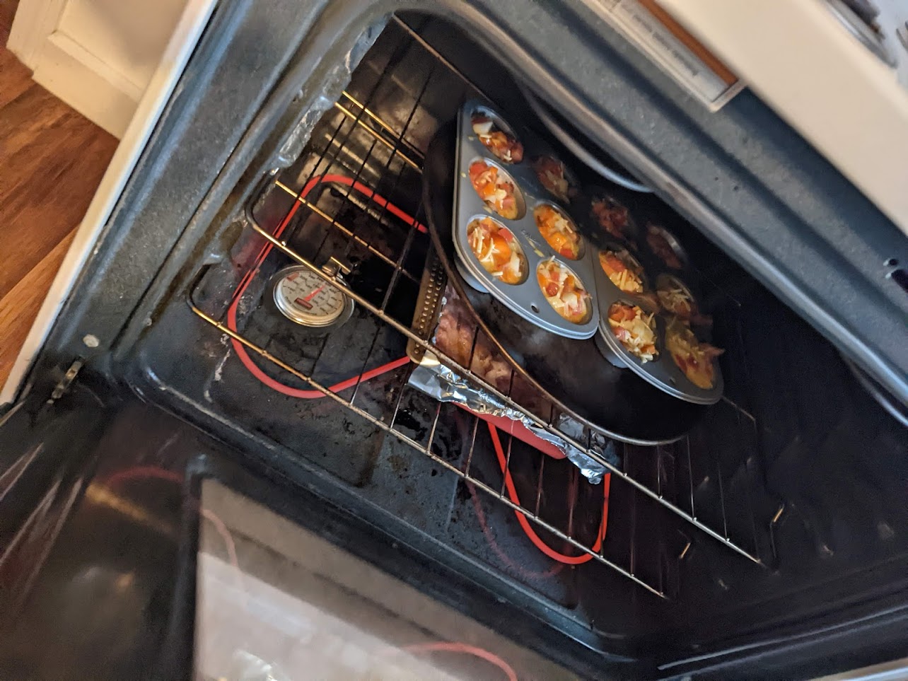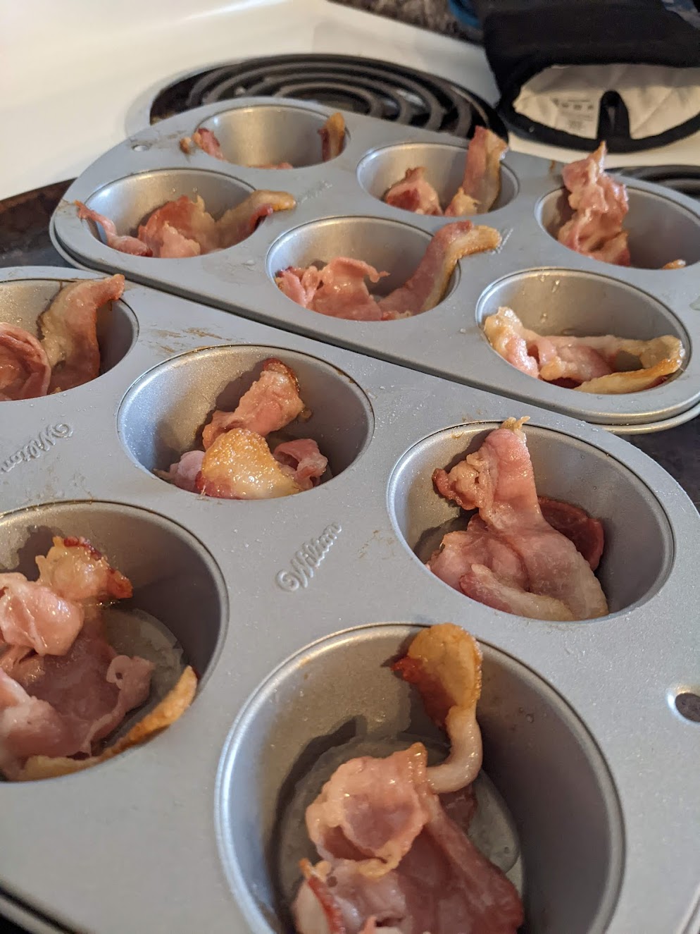 - Bake the bacon in the oven for 10 minutes, placing a cookie sheet under the muffin tins to catch any grease that may drop from the bacon and Egg Muffin Things.