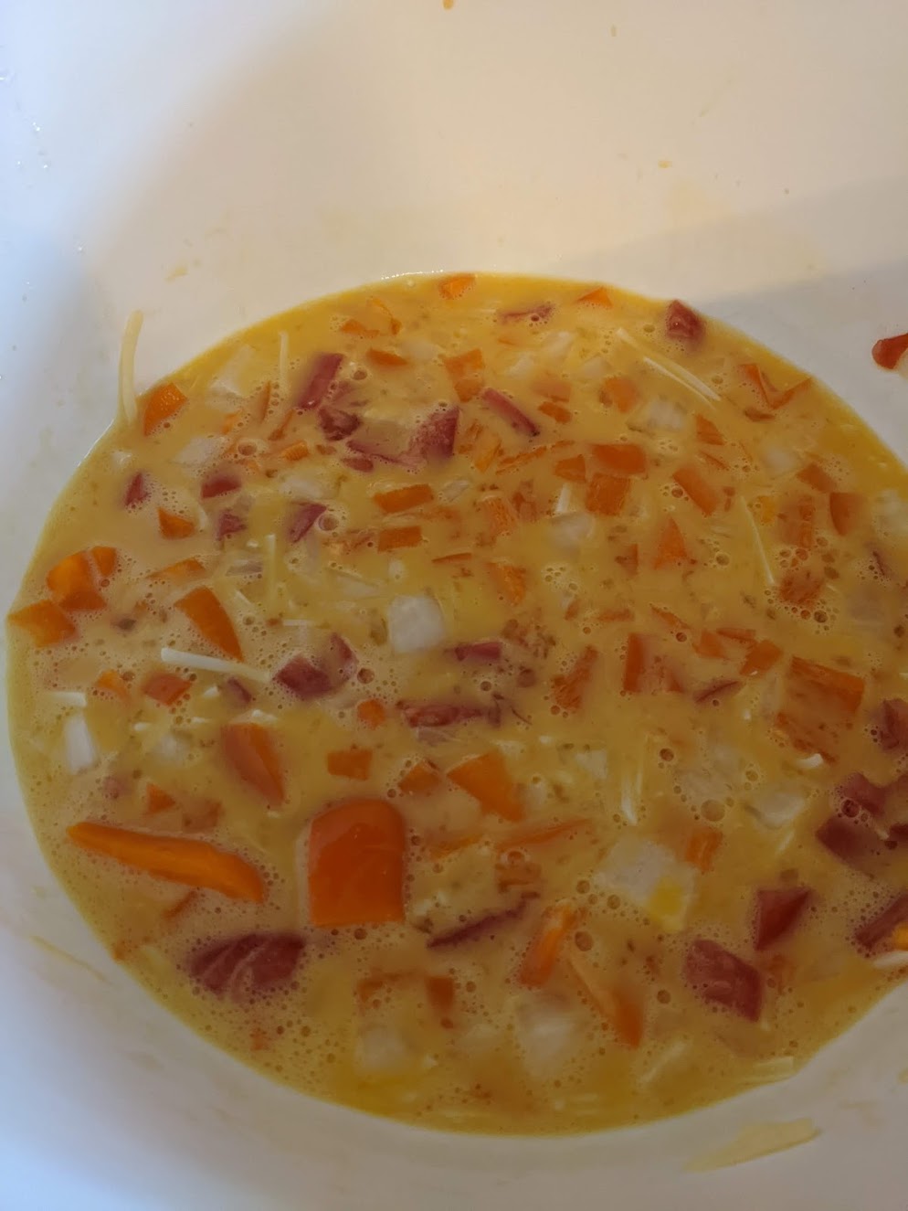 - While the bacon is baking, mix in a bowl the remaining ingredients.
